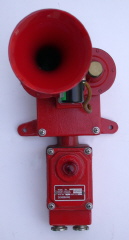 MA100W *Type : Weather Proof Deckhead Mounting * Rated Voltage & Current - DC24V : 220mA - AC110V : 100mA - AC220V : 40mA * Sound : Above 130 dB at 1m away * Frequency : 400 ~ 700 Hz * Air pressure : 4 ~ 7 kg/cm2 * Weight : 2.3 Kg * Material : Cast AL / Die Casting * Color : Red * Cable Gland : JIS 20C or 15B x 2 ea |