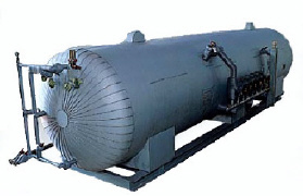 In Low Pressure storage, a single insulated pressure vessel is filled to over 90% of its volume with liquid carbon dioxide and maintained at approximately 20bars, and -20¡É, by refrigeration. Units with up to 61 tons capacity are available. In the Low Pressure system, a central bulk unit normally serves to protect various hazards spread throughout the facility. Hazard distances of 150 meter. or more can be accommodated but, wherever possible, the units are located near the hazard, or centrally to a group of hazards. The refrigeration of the Low Pressure storage units is accomplished by a commercial grade compressor, and refrigeration coil within the vessel near the top, Its only function is to maintain the pressure 18 to 23 bars. Failure of this refrigeration will cause the pressure to rise slowly. An alarm system is available to alert personnel to abnormal pressure levels and, if no repairs are made within a reasonable time, the unit will refrigerate itself by bleeding off vapor. Loss rates for this self refrigeration are very low. |